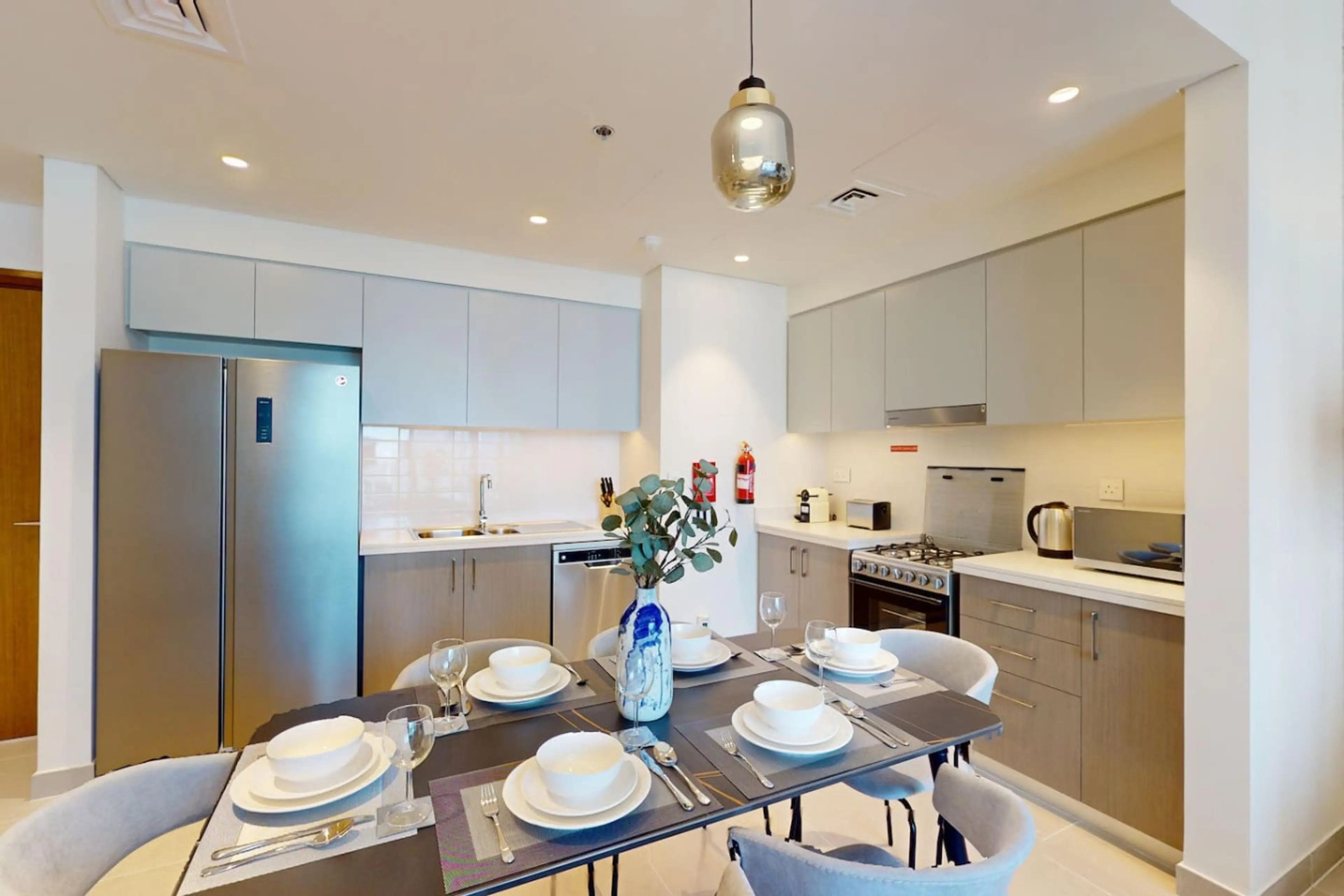 Stay in the heart of Downtown Dubai at this stylish 2BR apartment in Forte Tower 2, just 3 mins from Burj Khalifa, Dubai Mall & Opera. Sleeps 5+1 baby with king & twin beds, 2 baths, full kitchen, living room & Smart TV. Enjoy pool, gym, cinema, squash courts, kids’ play area & free parking. Fresh l...